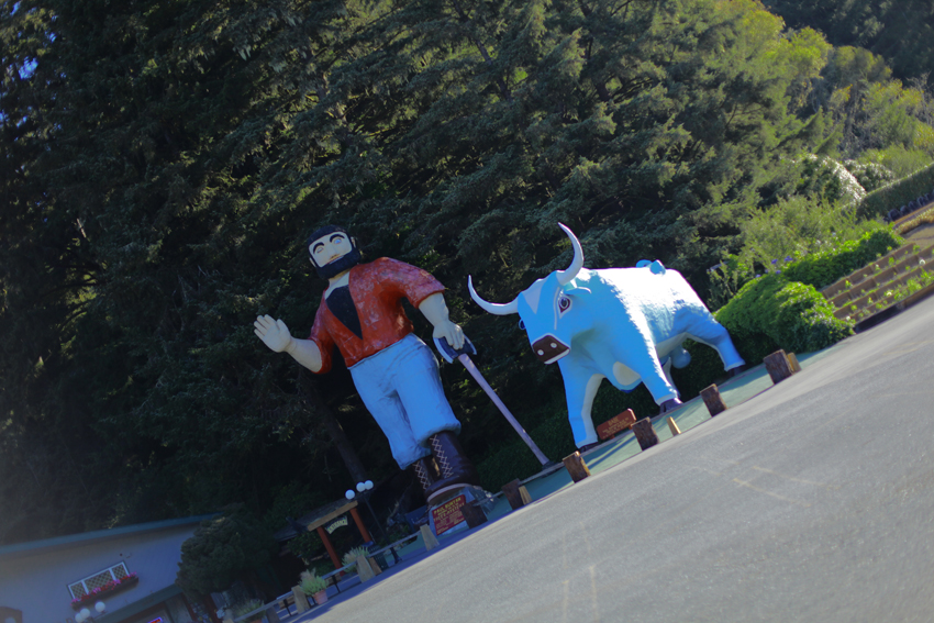 If you ever go to the Redwoods, you need to know that accommodation and hotels are limited in that area. So we decided to do it the real road tripping way and stay in a MOTEL – we chose the “Motel Trees”. (Mostly because of the name) It was seriously in the middle of nowhere on the 101 and a bit creepy at night. The only really memorable thing was a big tourist trap in front of it: Paul Bunyan and his massive Blue Ox…