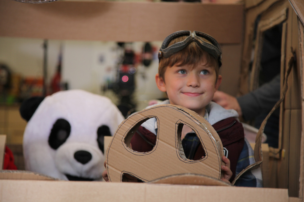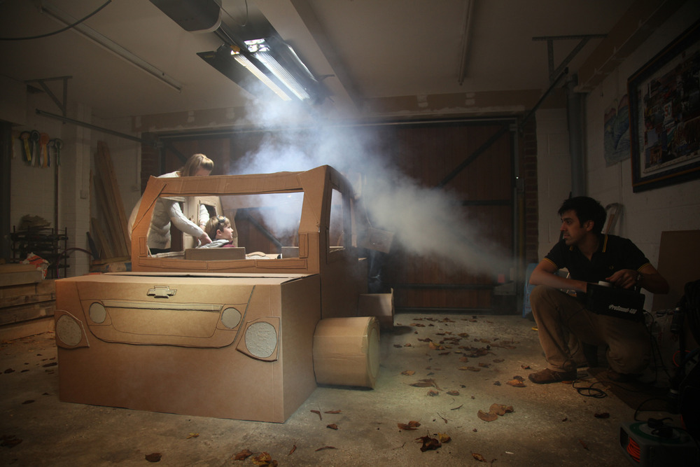 Last weekend a double garage in Chalfont St. Peter was turned into a film set. But not just any film set, one with the most wonderful cardboard car in the world, two cute child actors and three imaginative characters: a panda, a fighter pilot penguin and a pirate mouse. How could you want more?!